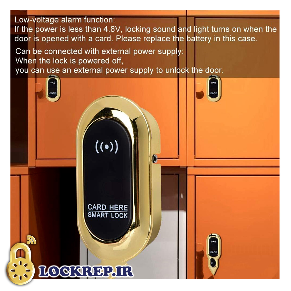 زمان هشدار صوتی كم شدن شارژ باتری قفل هم حدود یک هفته قبل از به اتمام رسیدن شارژ آن است و اگر احیانا به آلارم هشدار توجه نکرده و باتری عوض نشود، از طریق سیستم برق اضطراری یا با استفاده از یک باتری کتابی،می‌توان قفل را باز کرد و باتری آن را تعویض کرد و نیازی به تخریب یا دستکاری کمد نخواهد بود.